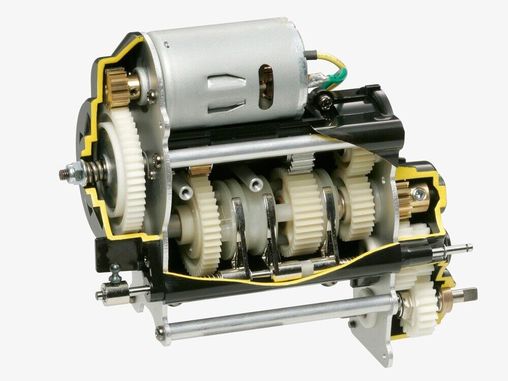 【 基本スペック 】 全長492mm、全幅216mm、全高220mm、重量約3.1kg ●モーター=RS540タイプ ●駆動方式=縦置きモーターシャフトドライブ4WD ●デフギヤ方式F/R共=2ベベルデフ ●サスペンション=前後ともリーフリジッド ●ダンパー=前後ともフリクション ●ギヤレシオ=ロー1:64.39 セカンド1:35.20 トップ1:21.14 ●コントローラー=ESC仕様