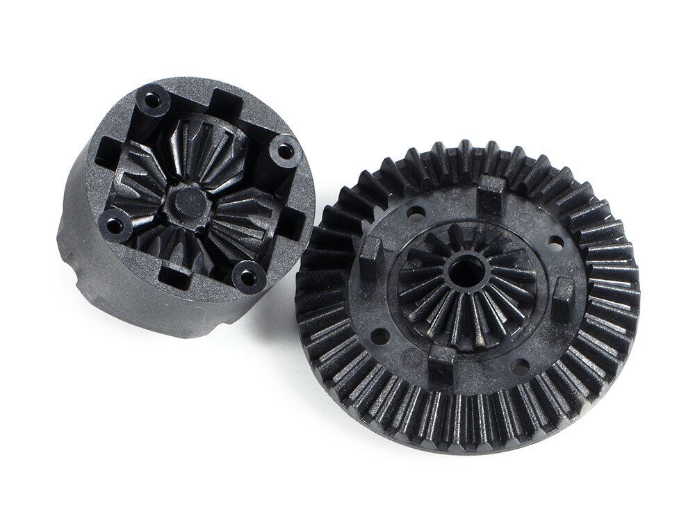 【 基本スペック 】 ●全長416mm、全幅188mm、全高146mm ●ホイールベース257mm ●タイヤ幅/径=前後とも27/67mm ●フレーム=船底形状バスタブタイプ ●駆動方式=縦置きモーター・シャフトドライブ4WD ●デフギヤ=前後とも樹脂製4ベベルタイプ ●ステアリング=3分割タイロッド式 ●サスペンション=4輪ダブルウィッシュボーン ●ダンパー=前後ともフリクション ●ギヤ比=キット標準8.27:1(別売のピニオンと組み合わせて11.38:1〜7.28:1までの10種類のギヤ比が選択可能) ●モーター=540タイプ ●スピードコントローラー=ESC仕様(別売)